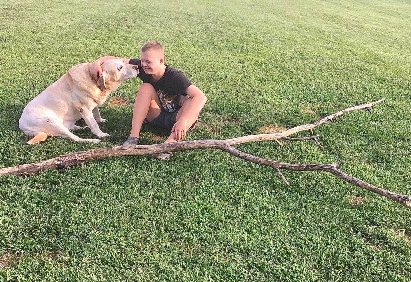 Just yesterday, Wil disappeared. We all split up to head to the places he usually goes. I ran out the back door to find Wil crouched in the bushes along our property line. He stood up and walked toward me carrying a large branch.