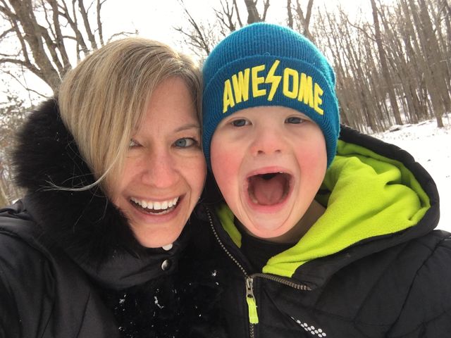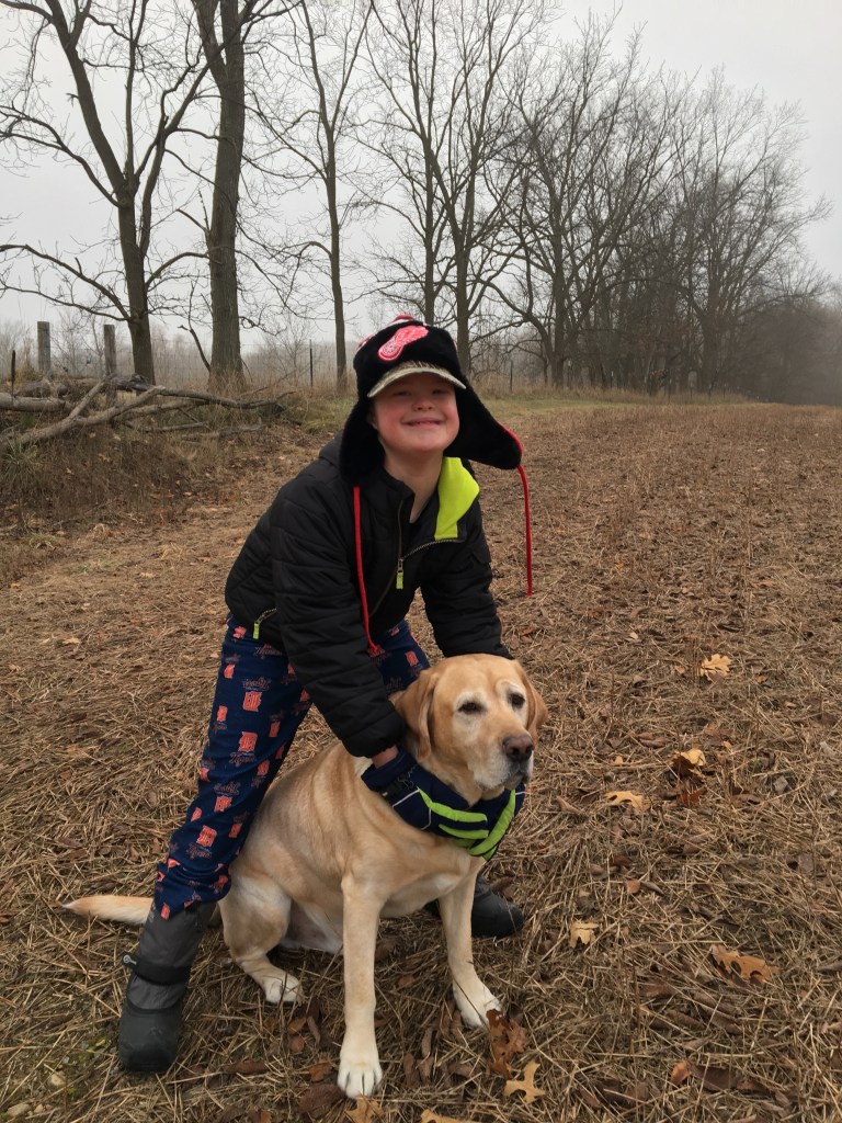 On the weekends at home, Wil puts on his coat, hat and gloves (the only help he needs is starting his coat’s zipper). Then he says to our yellow lab, “Come on, Woody, we are going on an adventure.”