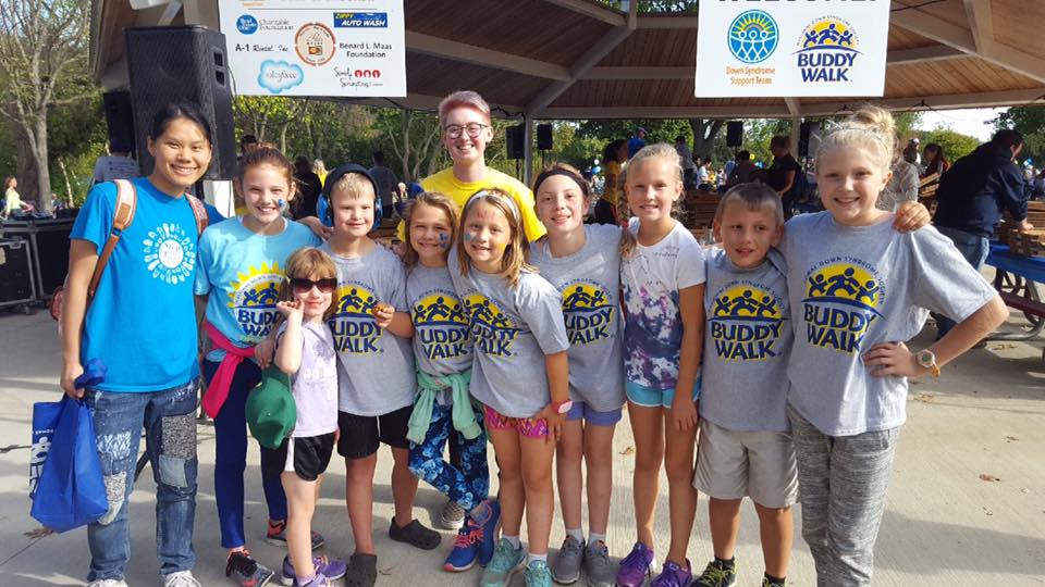 Beckie Brewis, Wil’s Early On coordinator joined us each year, too, as did the Helquists, Desbroughs and Gregorys; friends we made through a program led by Beckie called First Steps. When Wil entered preschool then elementary school, he met Sarah Stommen, Ashley Bobo and Lila Harvey. Their families have joined us nearly each year since. As Wil grew, the love from our Manchester community grew too, and many more families have joined and supported the Buddy Walk. Manchester’s very own SteeleGrafix made the Buddy Walk t-shirts this year!